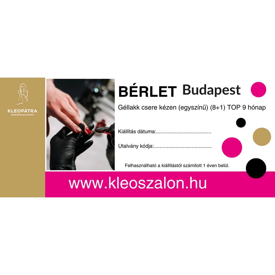 Budapest Géllakk csere bérlet (egyszínű) (8+1) TOP 9 hónap